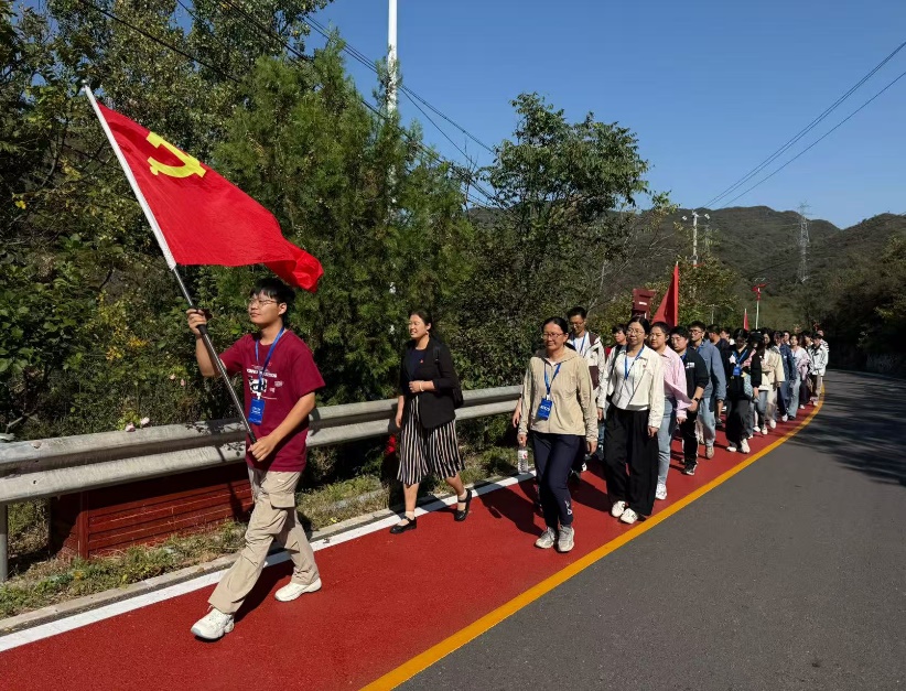 随后,队伍踏上了“重走长征路”的体验征程。沿着蜿蜒的山路,党员们追寻着先辈的足迹,亲身感受革命战争年代的艰辛与不易,感悟红军将士信念坚定、不畏艰险的伟大长征精神。