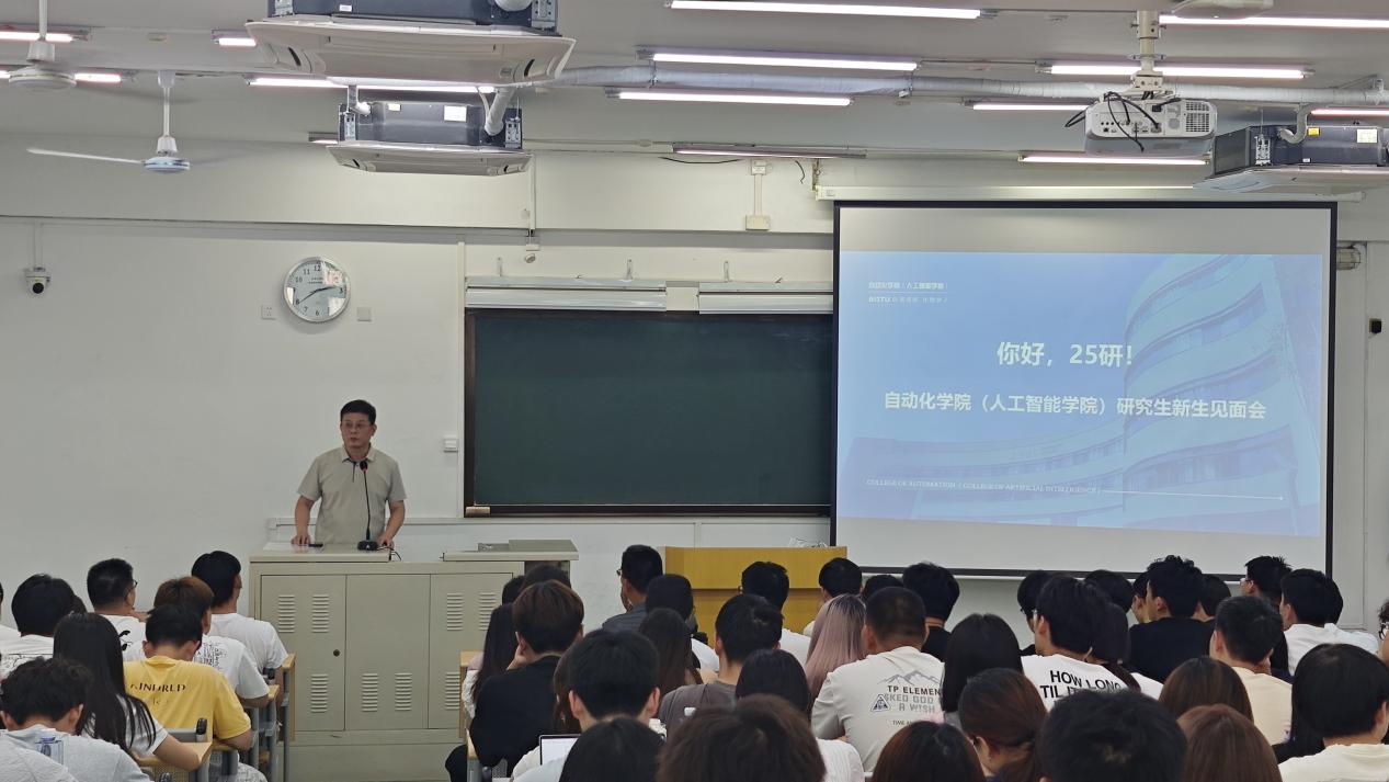 在2025级硕士新生见面会中,学院党委副书记甘长来从学业适应、心理健康、校园安全和职业规划四方面对新生提出寄语,强调研究生阶段要重点培养“处理人际关系和应对复杂事务”的能力,希望同学们笃行实干、全面发展。