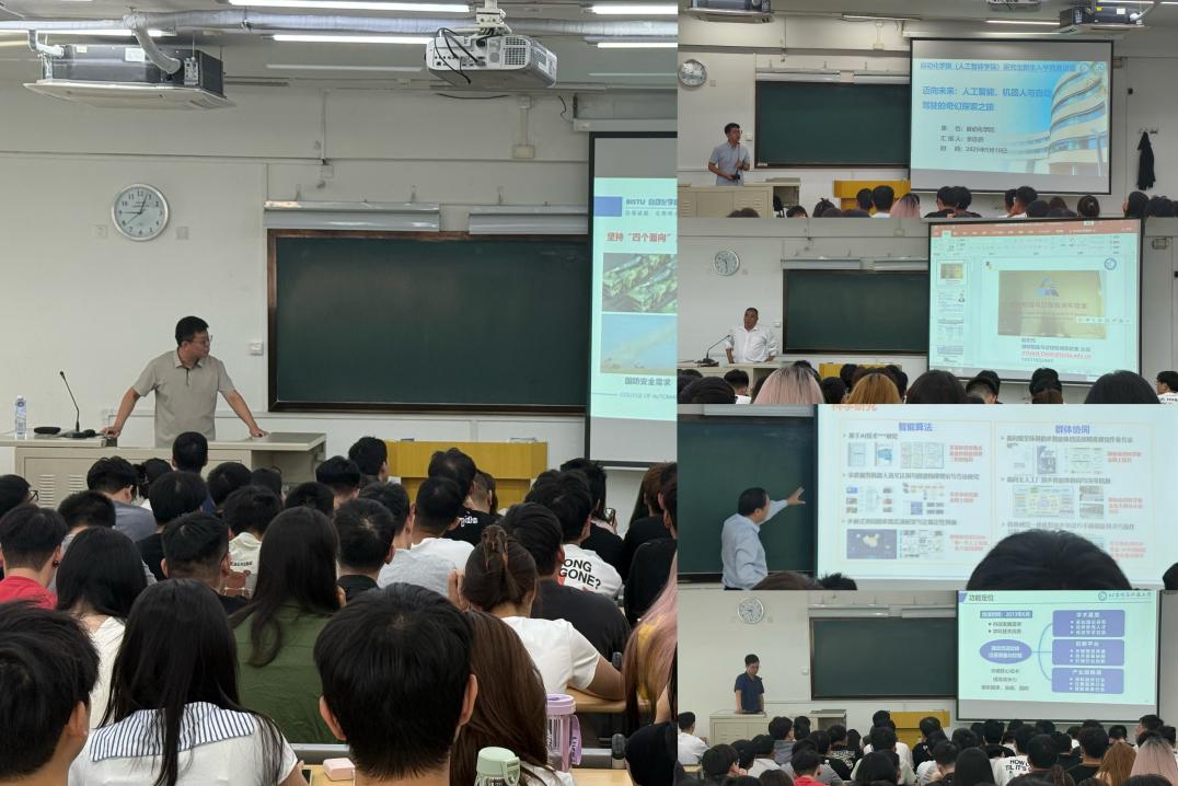 张涛教授的深地信息测量关键技术及产学研相关工作,揭示了自动化技术在极端环境下的应用;赵纪元教授介绍了增材制造(3D打印)与过程检测的最新研究;陈雯柏教授跟新生们探讨了“大模型时代的具身智能”这一热门的话题;李连鹏老师带领同学们进行了一场人工智能、机器人与自动驾驶的奇幻探索之旅;赵辉老师深入浅出地讲解了导航技术的现状与未来;徐小斌老师通过自然界生物的各种特点揭示了导航奥秘,展现了从生物学到尖端工程的奇妙跨越;纪毅老师介绍了“星基机会信号导航”的前沿进展;刘伟、于镝老师则分别就多模态数据处理、智能物联与协同控制等方向带领新生;赵波、高超飞老师分别就智慧能源研究团队及相关研究工作和电气工程与智能装备进行了介绍。