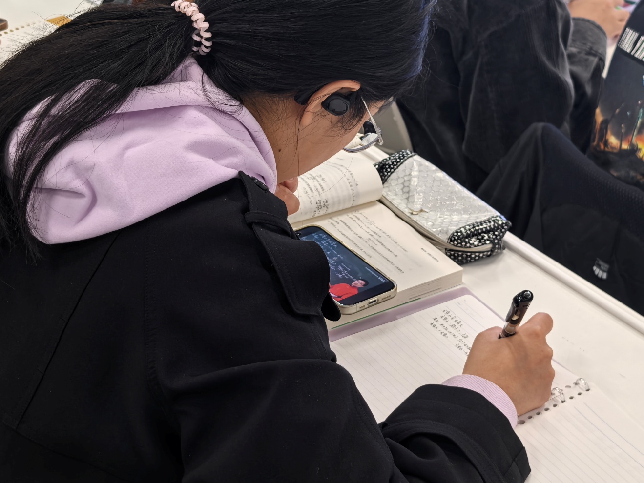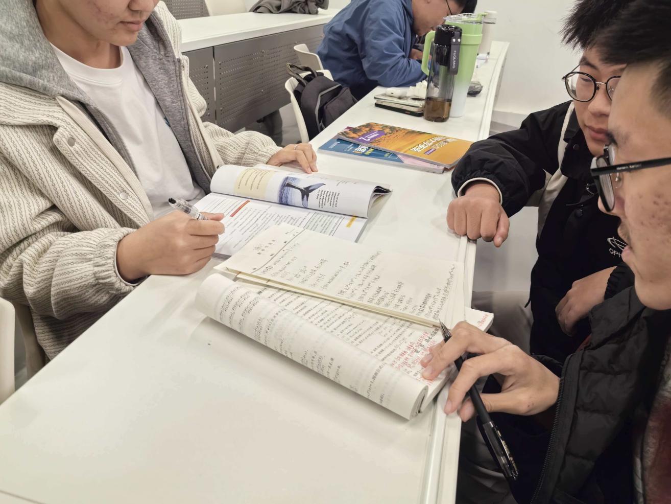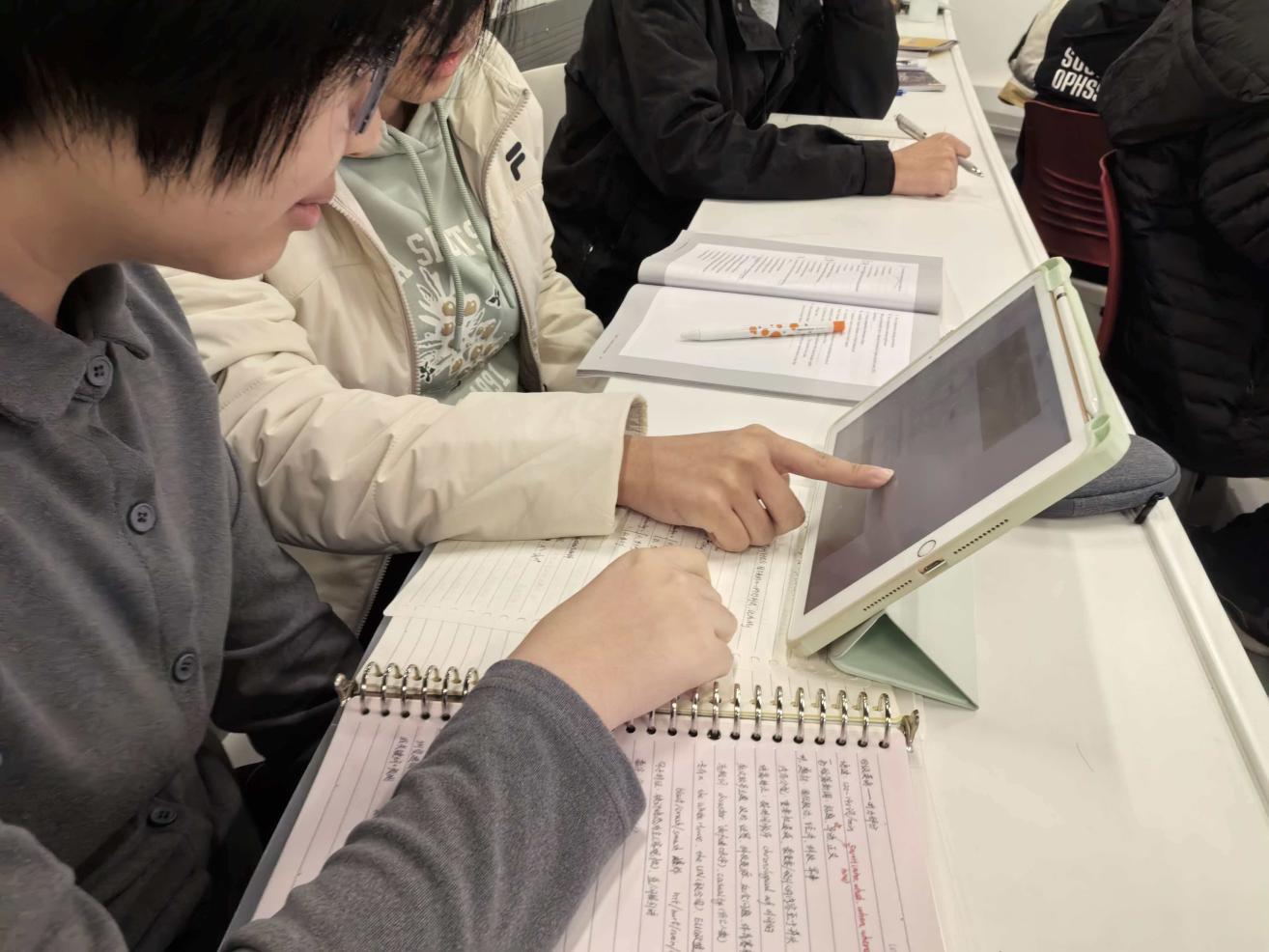走进自习室,每个座位上都有专注的身影:有的同学在草稿纸上反复推演高数导数公式,笔尖停顿处还贴着“网课重点”的小标签;有的三人一组围坐,对着高数习题册轻声讨论,一人讲解思路、两人补公式,很快就解开了课上没懂的难题;还有同学在错题本上标注,把自习时光过得满满当当。