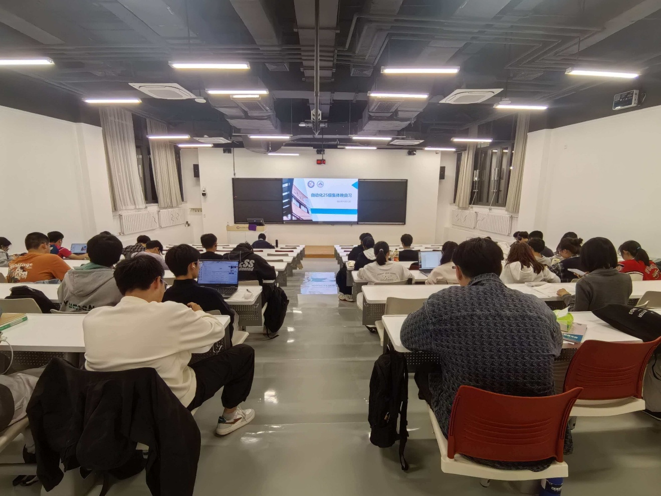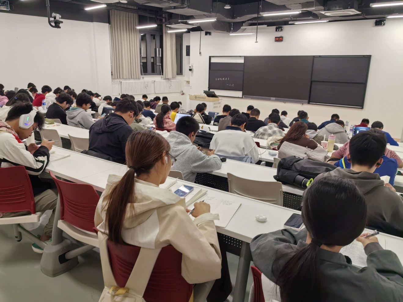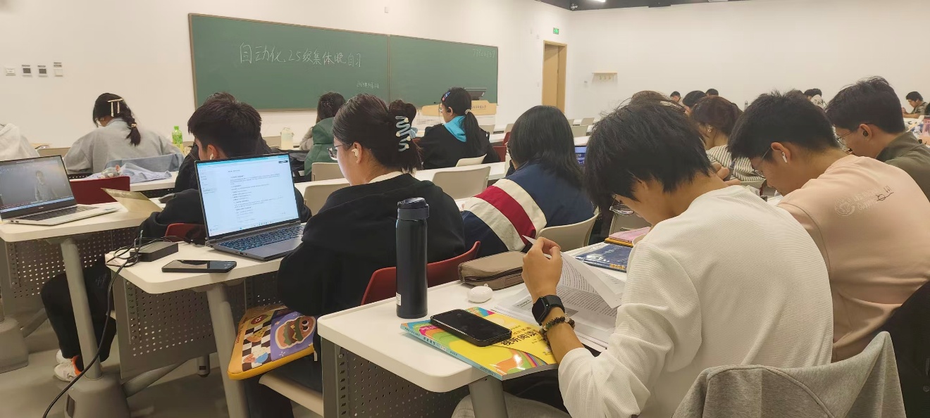 傍晚 6 点半,工学楼 C 座 1 层的教室渐次亮起暖光。笔尖划过草稿纸的沙沙声、课间轻声讨论的交流声、偶尔翻书的窸窣声,构成了自动化学子的专属“晚自习交响乐”。