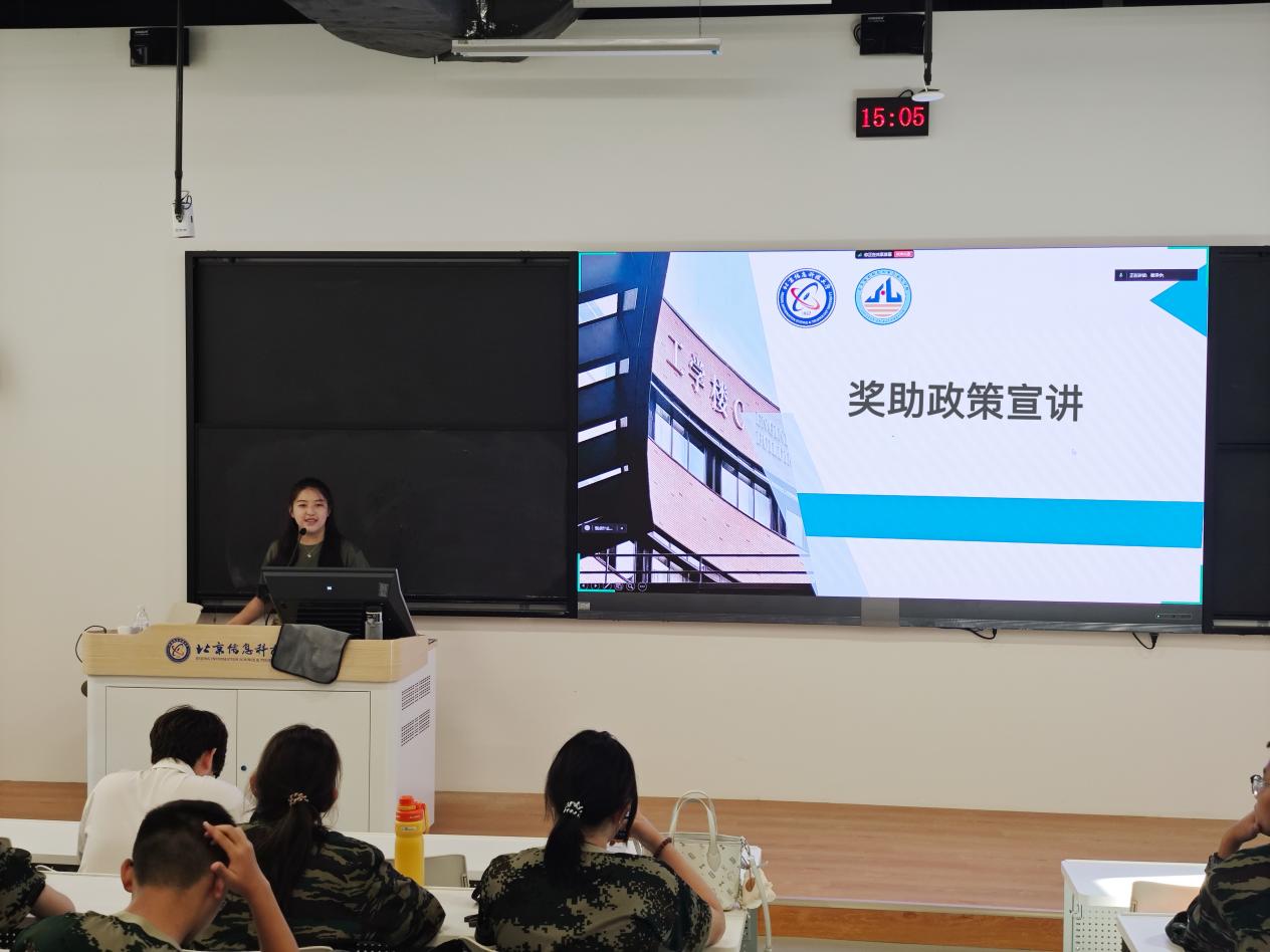 为帮助新生们了解学校各项资助政策,解决学业和生活中的后顾之忧,资助工作专项辅导员姜祎老师详细解读了国家奖学金、国家励志奖学金、国家助学金、国家助学贷款以及学校设立的各类奖学金、助学金的申请条件、评选流程和发放标准。她还针对新生们关心的助学贷款申请流程、还款方式等问题进行了耐心解答,并鼓励家庭经济困难的新生们要积极利用学校的资助政策,努力学习、奋发向上,用优异的成绩回报社会和学校的关怀。
