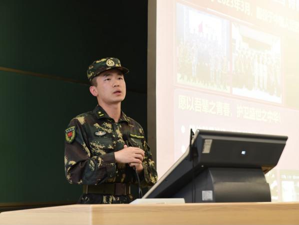 在朋辈教育环节,学院邀请了多名优秀学长学姐,包括科创达人及退伍大学生代表与新生们分享经验。优秀学长学姐结合自身学习经历,从学习方法、时间管理、社团选择等方面为新生们提供了实用建议;科创达人李婧琳分享了参与学科竞赛、科研项目的经验,鼓励新生们培养创新思维,积极投身科创实践;退伍大学生代表张思庆身着军装,讲述了自己在部队的成长经历和军旅生涯带来的收获,用“退伍不褪色”的精神感染着在场的每一位新生,激励他们以坚强的意志和饱满的热情面对大学生活中的挑战。