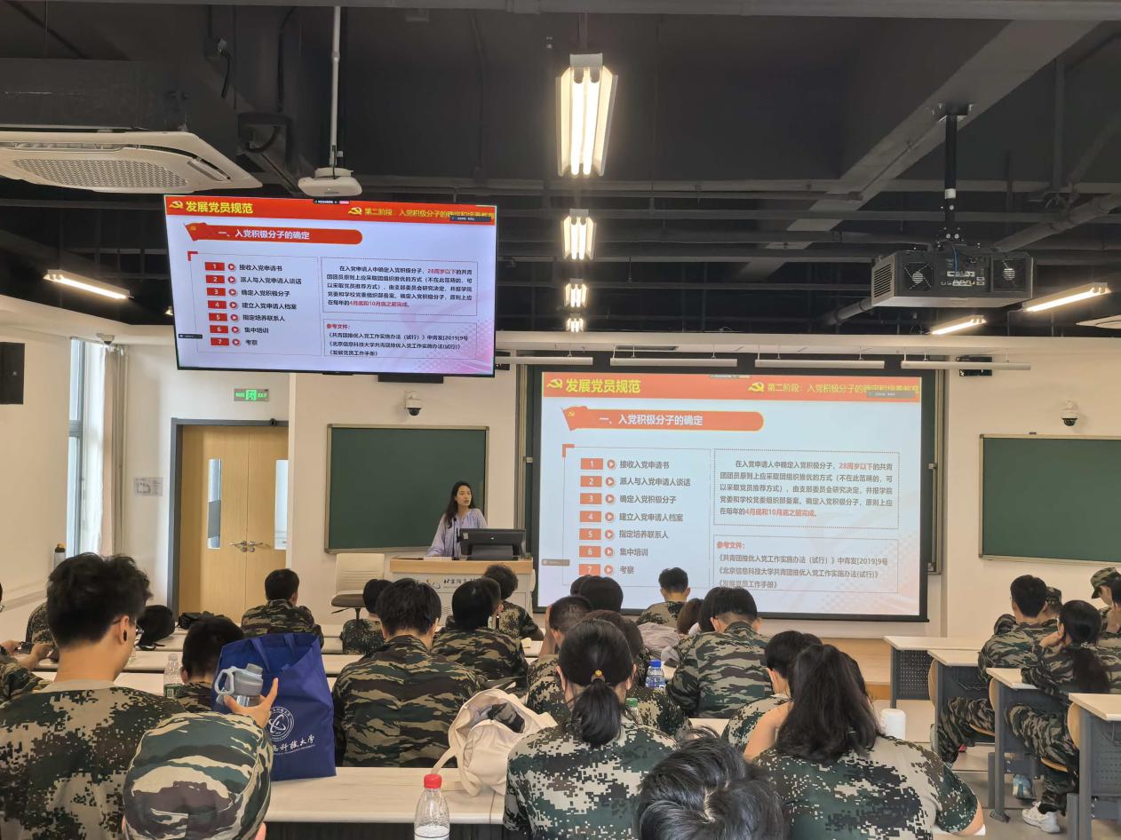为帮助新生们了解入党流程,坚定理想信念,学院组织员陈若瑶老师从“入党条件、入党程序、党员义务和权利”等方面进行了详细讲解。她结合自身党务工作经验,用通俗易懂的语言介绍了从提交入党申请书到成为一名正式党员的各个环节,包括入党积极分子的培养教育、发展对象的确定、预备党员的接收和转正等,并鼓励新生们树立远大理想,积极向党组织靠拢,以党员的标准严格要求自己,在思想上和行动上努力向党组织看齐,争取早日加入中国共产党。